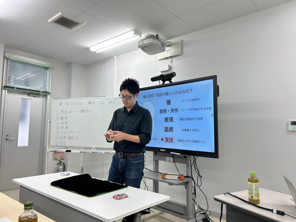 10月31日(金)に令和7年度第3回のとみけんを実施しました。今回は戸崎健太さんを講師としてお招きし、お話を聞かせていただいたり、マジックを見せていただいたりしました。目の前でのマジックに驚きの連続でした。あっという間の楽しい時間となりました。